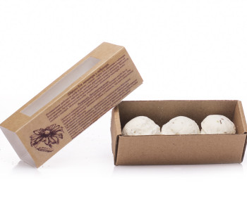 Основным компонентом являются цветки ромашки, которая всегда была одним из популярнейших средств в натуральной косметике и медицине. Она, придает коже приятный матовый оттенок и мягкость, снимает напряжение и устраняет морщины. Экстракт ромашки обладает прекрасным антисептическим действием, оказывает спазмолитическое, противовоспалительное, седативное и некоторое обезболивающее действие, а также ускоряет процессы регенерации эпителия и задерживает развитие воспаления. Восстановить, придать коже молодость и красоту поможет наш шарик с экстрактом ромашки!
