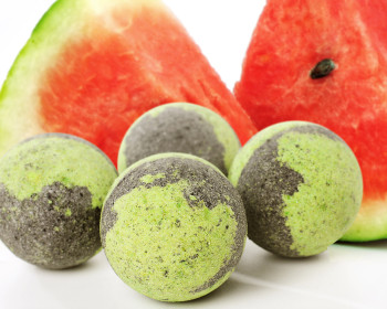 Наши пенные бурлящие шарики по внешнему виду являются маленькой копией этой популярной ягоды, только в отличии от истиной прародительницы их можно использовать для ванны не только с августа по сентябрь, а в любое время года, и даже нужно это делать, т.к. входящий в состав Экстракт арбуза питает и увлажняет кожу, предупреждает ее дряблость, улучшает цвет, делает кожу мягкой и гладкой, придает ей эластичность и упругость, тонизирует, ускоряет метаболизм.